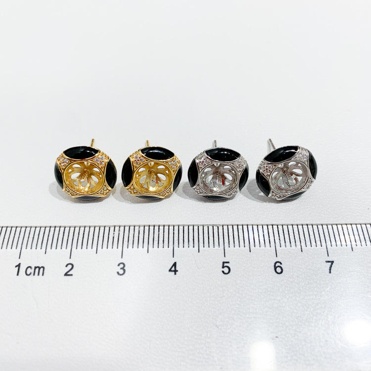 S925 Silver Fine Stud Earrings DIY Pearl Accessories with 7-8mm Round Beads Empty Earnail Tray Fashion Jewelry-22064