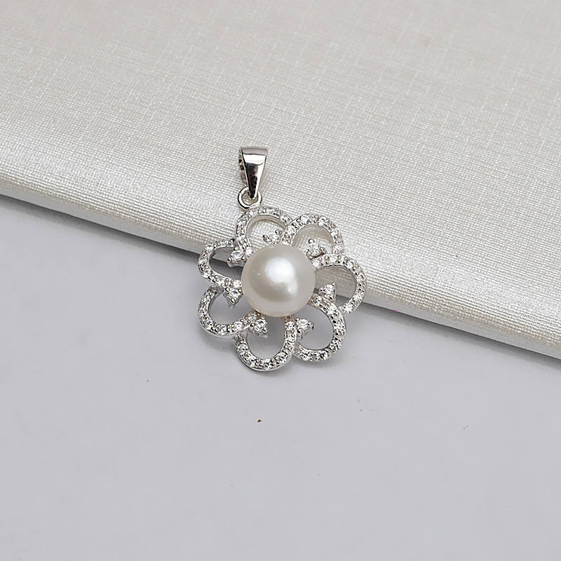 S925 Silver Flower Shaped Pendant for Women Handmade Pearl Necklace with Empty Holder Personalized Jewelry DIY Accessories
