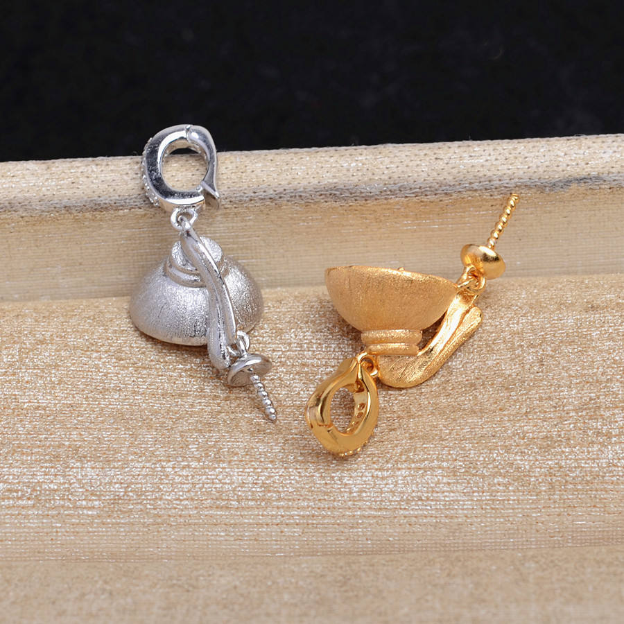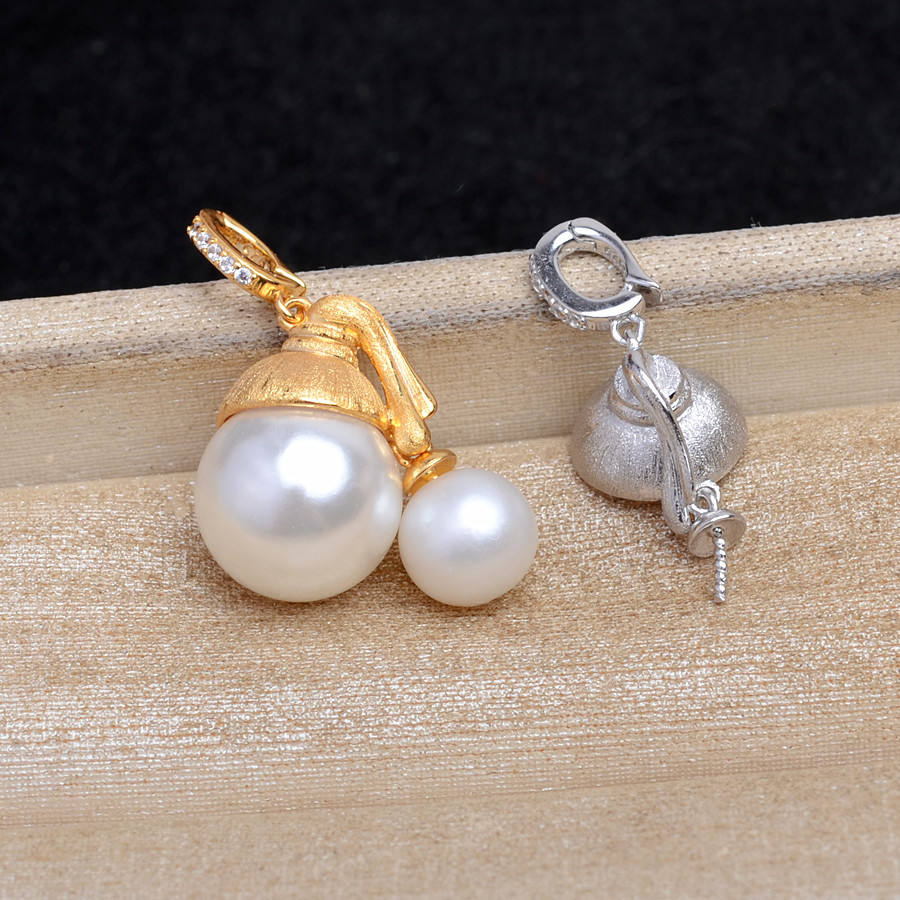 S925 Silver Frosted DIY Accessory Girl's Hat with Universal Buckle Pearl Pendant Empty Holder 10-12DIY Jewelry Cases 5696