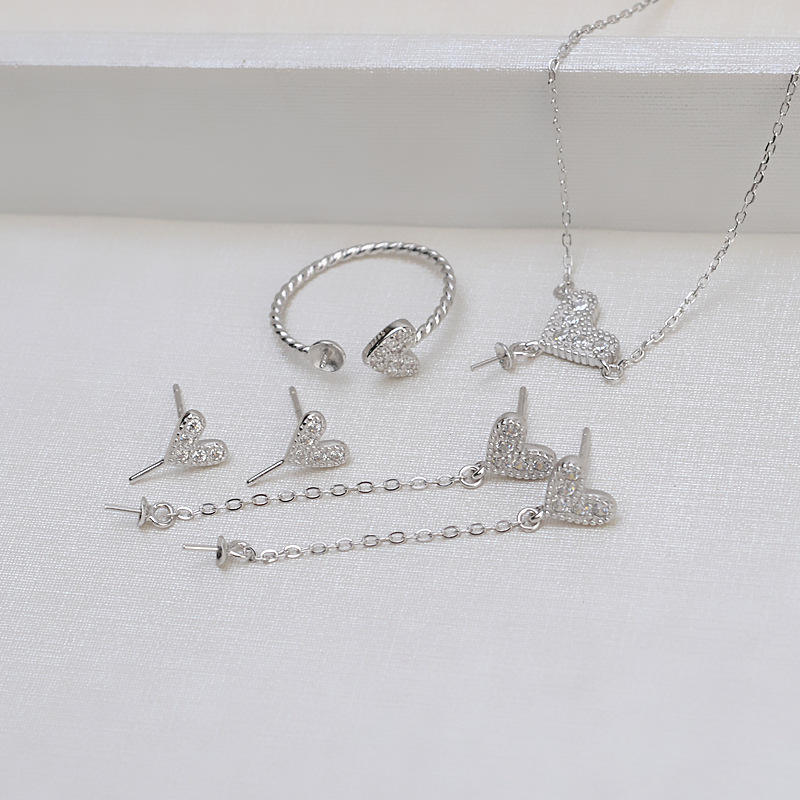 S925 Silver Heart Earring Stand DIY Pearl Accessories 8-11 Peach Heart Earaccessory Empty Stand 5817 Fashion Jewelry Sets