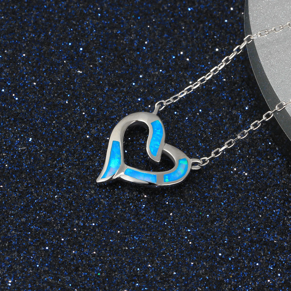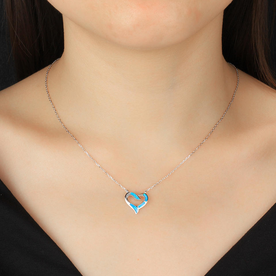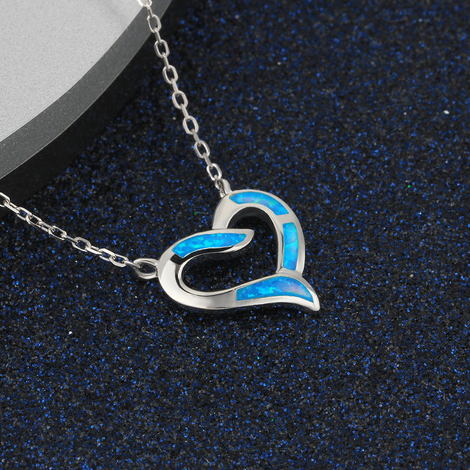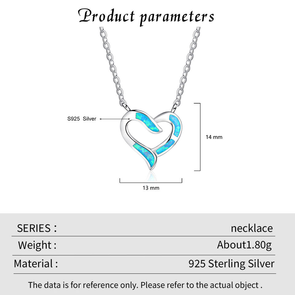 S925 Silver Heart Shaped Pendant Opal Inlay Rhodium Plated Link Chain Necklaces Unisex Stylish Trendy Party Wedding Anniversary