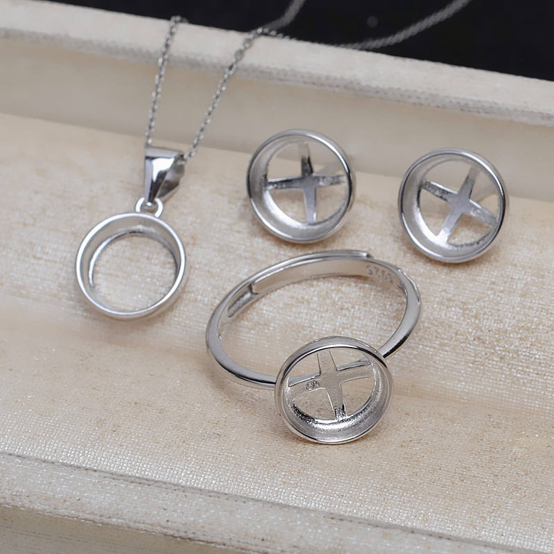 S925 Silver Horse Shell Bead Pendant Head Earrings 8-9-10 Ring Set DIY Pearl Jewelry Accessories Tray 4950