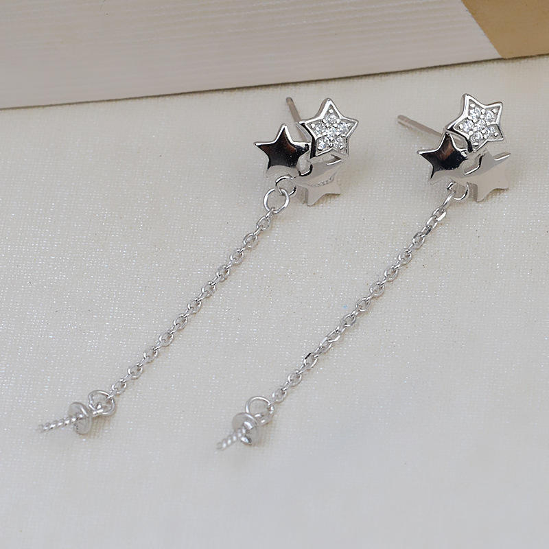S925 Silver Hot Bar Pendant Head Earnail Set Women's Trendy 7-9 Hair Pearl Hollow Support Semi-finished Dangle Earrings 2715