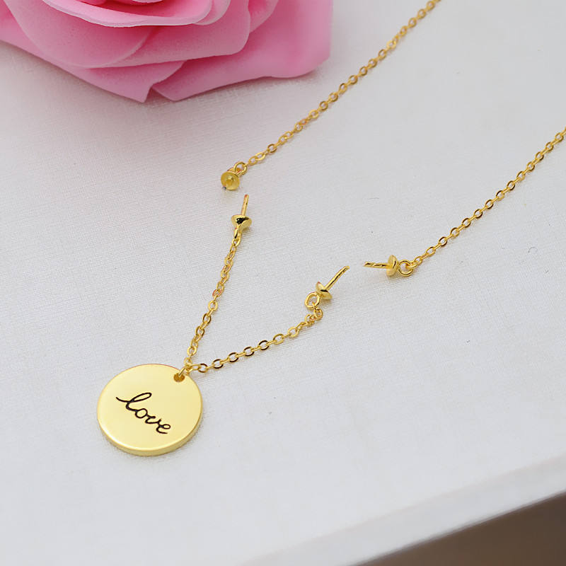 S925 Silver LOVE Style Pendant Trendy Heart Shape Fancy Chain Necklace Hole Pearl for Women DIY Pearl Jewelry Empty Tray 370