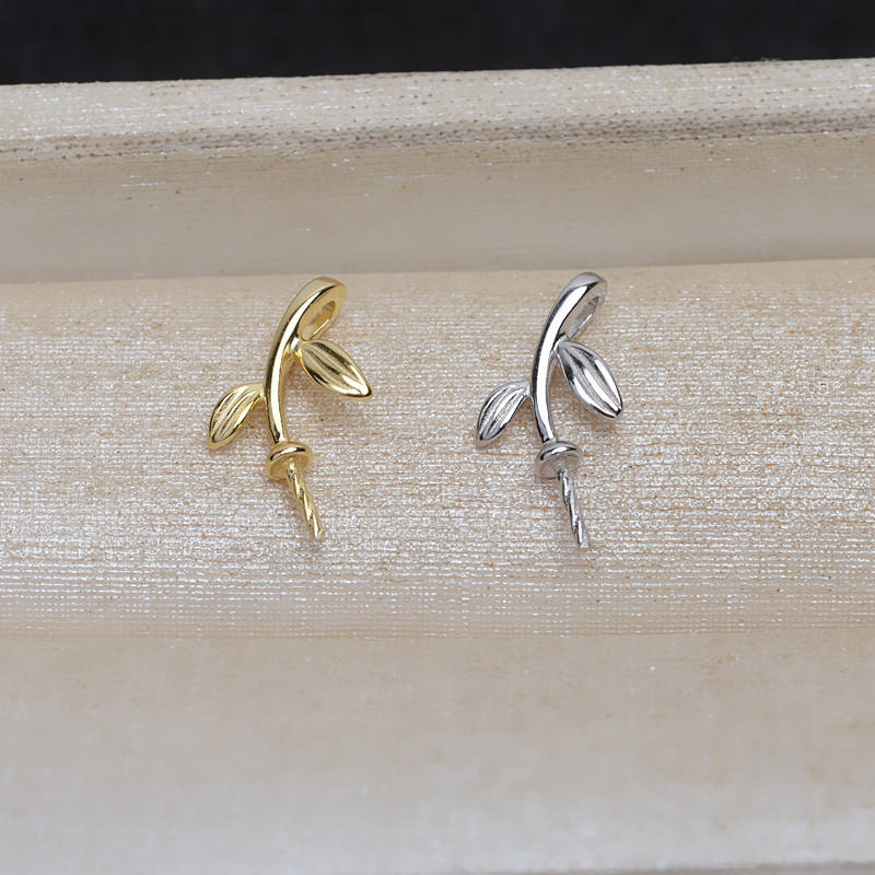S925 Silver Leaf Pendant Female DIY Pearl 8-12 Accessories Empty Tray Semi-Finished Product 4996 with Head Pendant and Charms