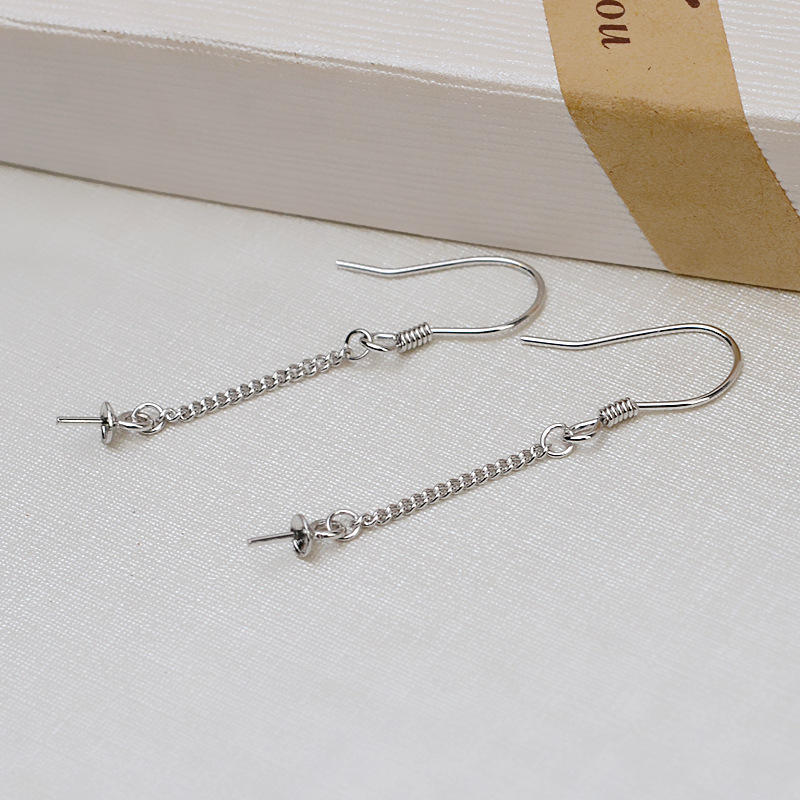 S925 Silver Long Earline Earrings for Women DIY Jewelry Accessories with Pearl Holder Jadeite Jade Agate Empty Holder