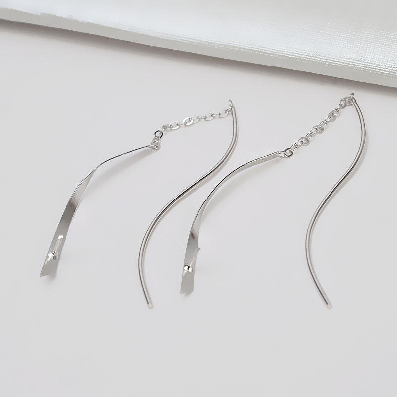 S925 Silver Long Tassel Headband Earrings with 10-11 Simple Pearl Women's DIY Jewelry Accessories 892