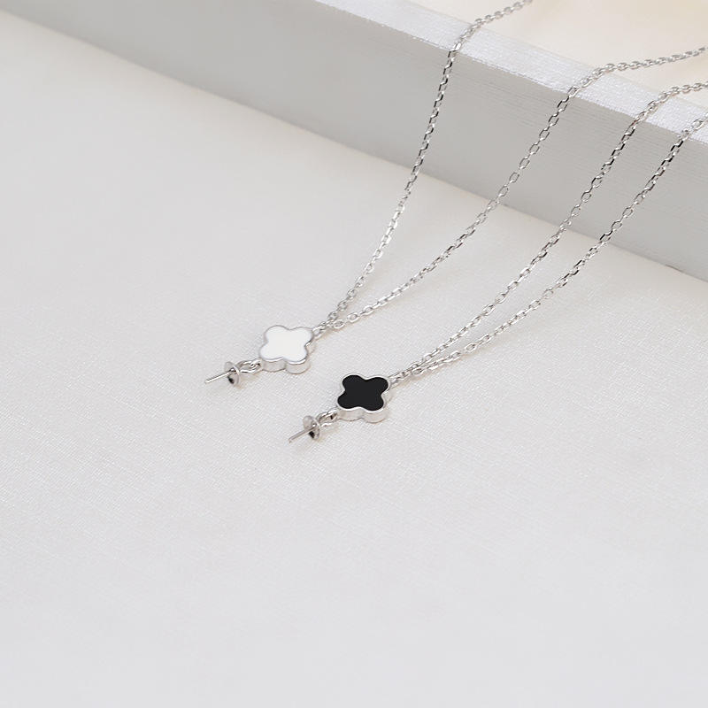 S925 Silver Lucky Grass Drop Gel Earring Necklace Ring Set with Pearl Empty Tray Women's DIY Fashion Jewelry Accessories 1284