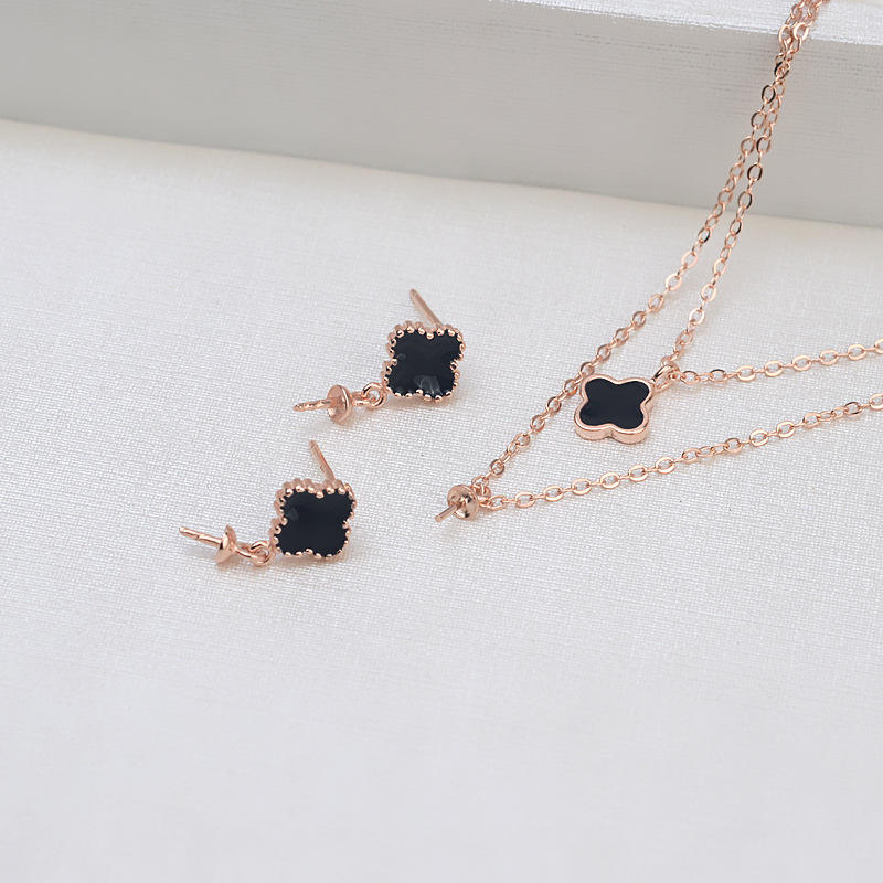 S925 Silver Lucky Grass Drop Gel Earring Necklace Ring Set with Pearl Empty Tray Women's DIY Fashion Jewelry Accessories 1284
