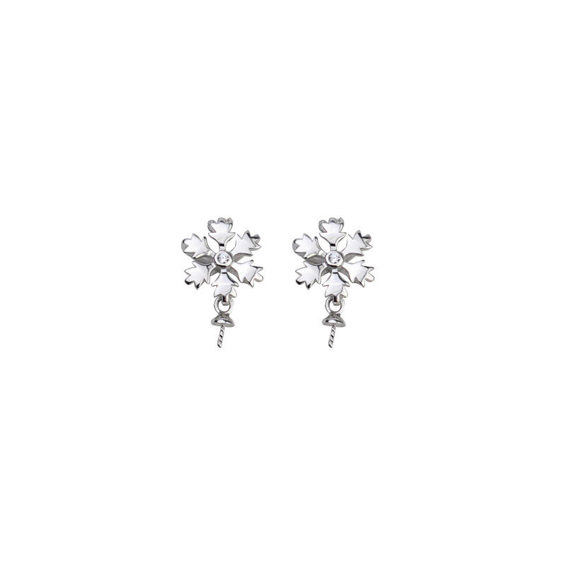 S925 Silver Lucky Grass Drop Gel Earring Necklace Ring Set with Pearl Empty Tray Women's DIY Fashion Jewelry Accessories 1284