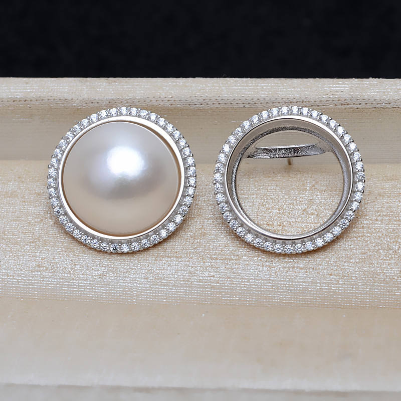 S925 Silver Marble Earrings 10mm DIY Accessories Empty Holder for Pearl Jewelry Findings 5290