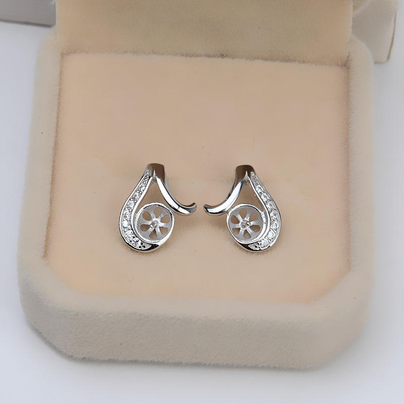 S925 Silver Minimalist Sunflower Style Earrings for Women Fashionable Pearl Earrings with Empty Holder for DIY