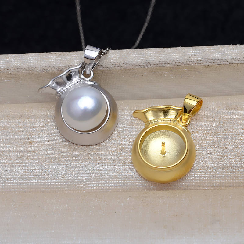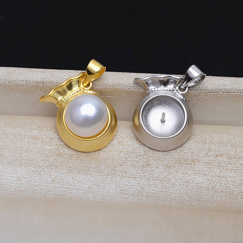 S925 Silver Money Bag Pendant 9mm Mabe Pearl Holder DIY Jewelry Charm Fine Pendant Accessory