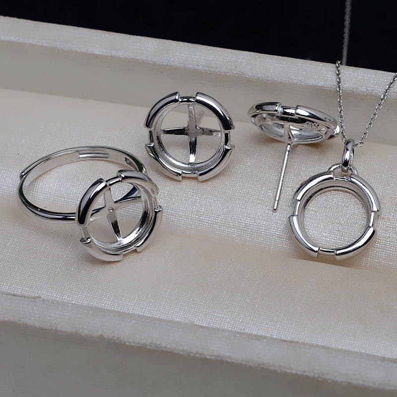 S925 Silver Needle DIY Accessory Set 10.5mm Pearl Horse Shell Flat Bottom Empty Pendant Earring Holder 25mm 4mm Size-4067 Model