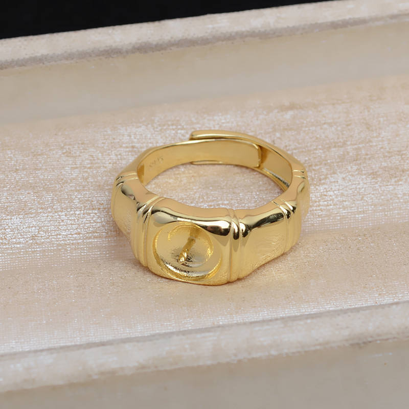 S925 Silver Open Mouth DIY Ring Thickened and Bold Bamboo Knot 9-10 Pearl Accessory Empty Holder 5351 Opening Adjustable