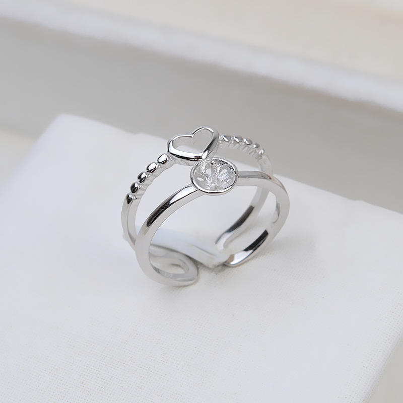 S925 Silver Open Mouth Ring Small Heart Shaped Adjustable DIY Pearl 6-7 Accessory Holder 223-Jewelry Findings & Components