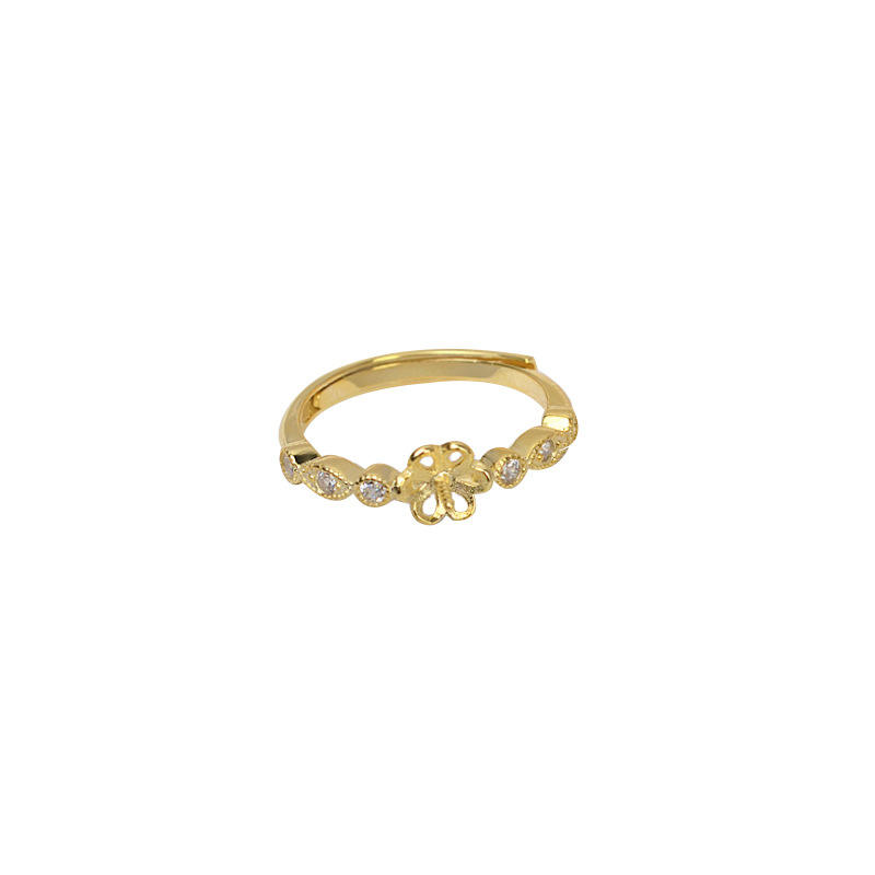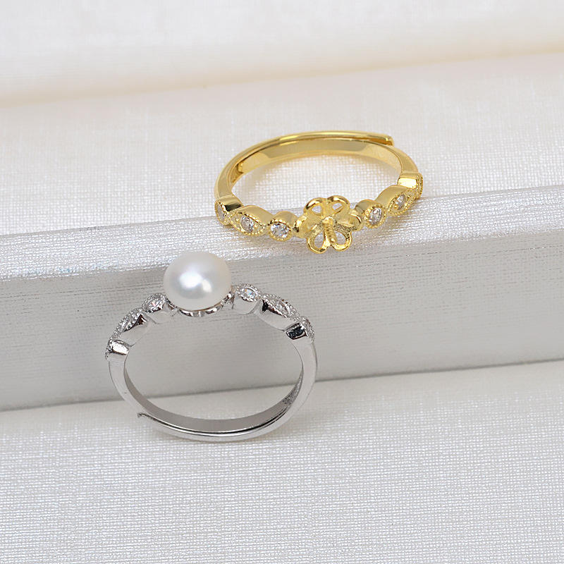 S925 Silver Open-Mouth Ring with Living Mouth Tire 7-8 Pearl Semi-Finished Tray DIY Accessories Adjustment 1615 Crystal Rings