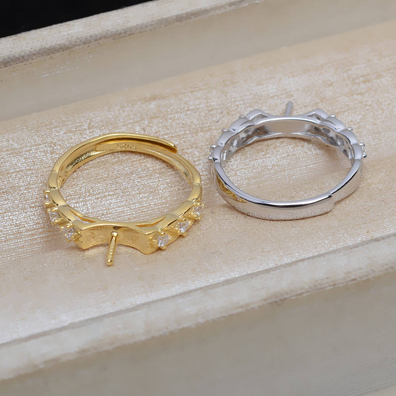 S925 Silver Open Ring JG5323 Large Pearl Accessories DIY Empty Holder for Women Fashion Rings 11-12-13 Sizes