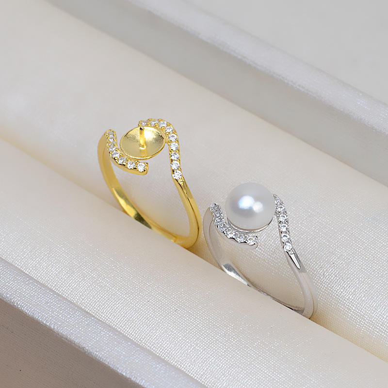 S925 Silver Open Ring for Female Adjustable Finger Size 7-8 Pearl DIY Accessories with Empty Stand Tarnish-Free for Living Style