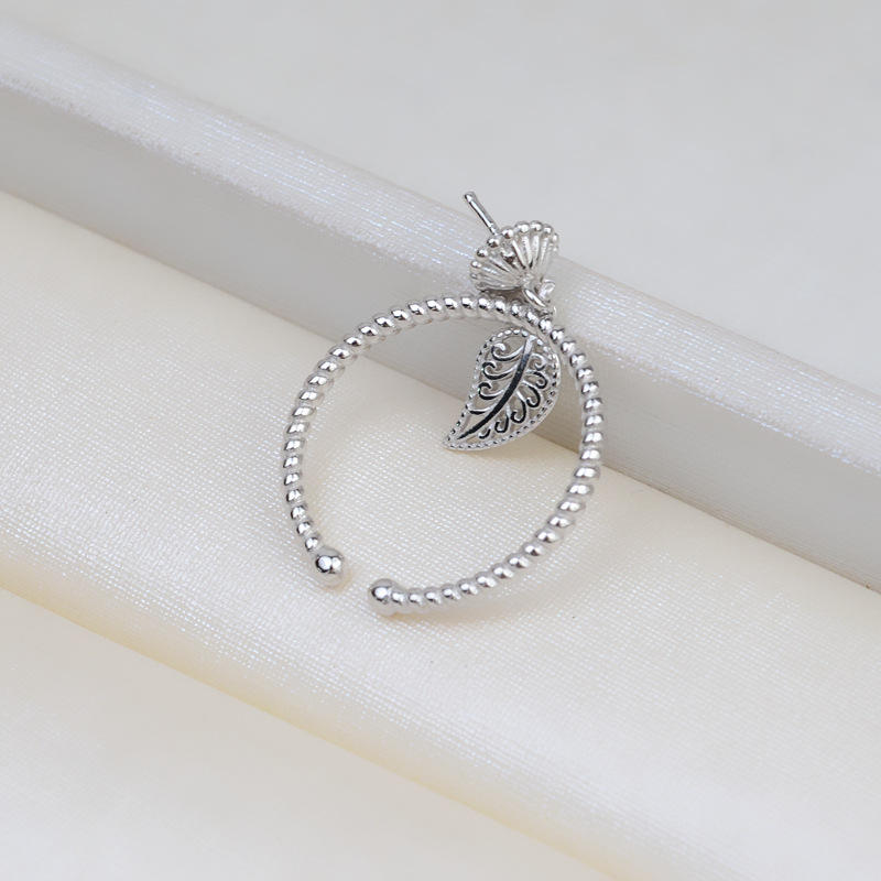 S925 Silver Opening Fried Dough Twists Leaf Ring Adjustable Finger Ring with 8-9 Pearl Inlay Accessories 1794