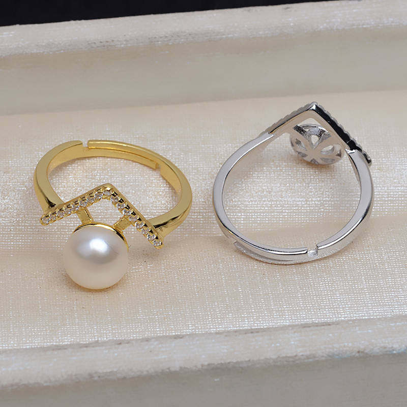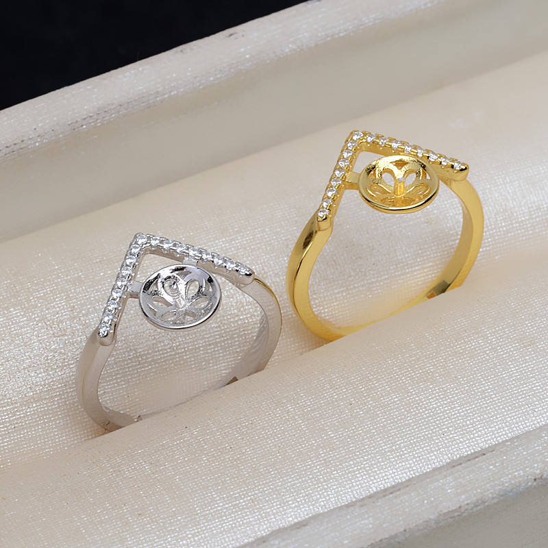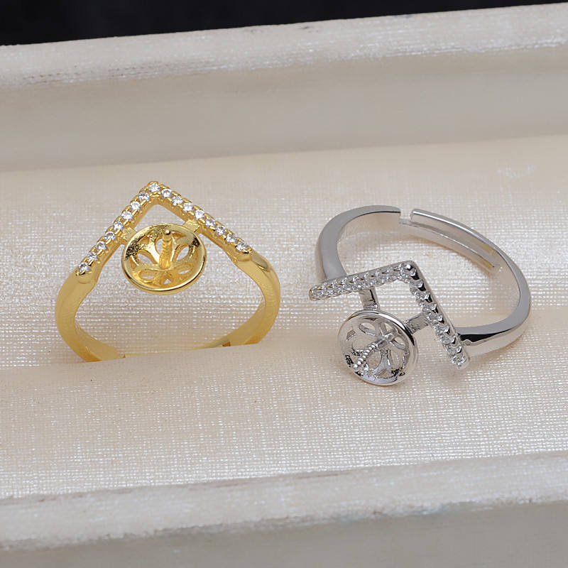 S925 Silver Opening V-Shaped Tire Hair Ring DIY Jewelry Accessory with 8-10 Pearl Hollow Holder Active Female Mouth 3974