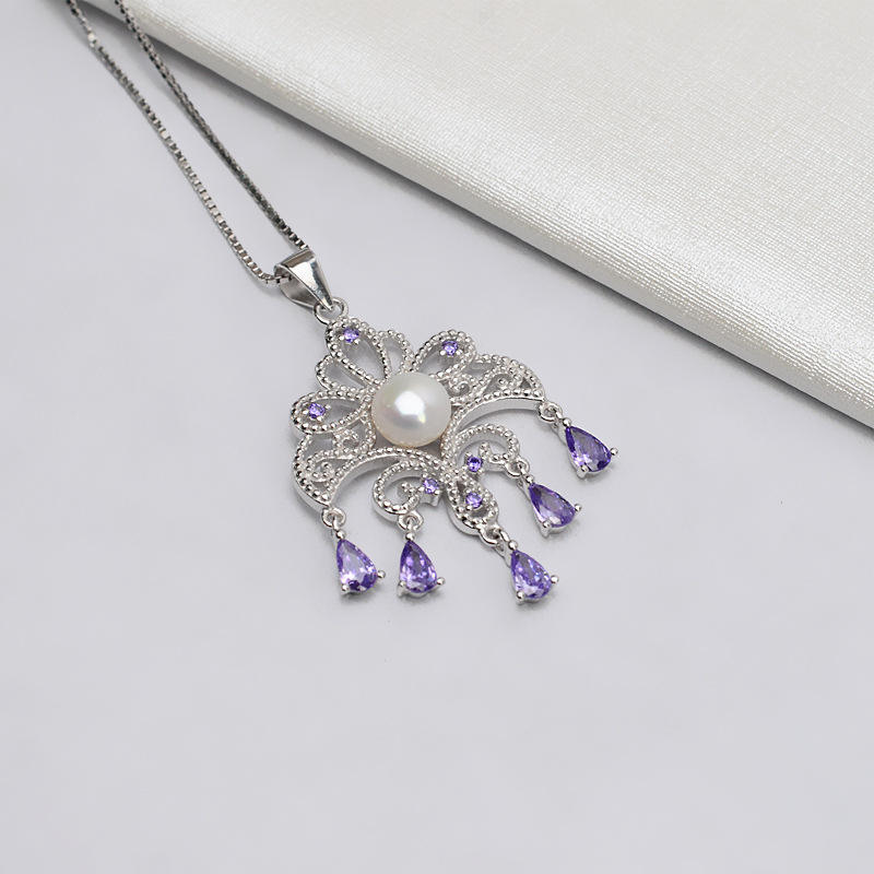 S925 Silver Palace DIY Accessory Vintage 6-7 Pearl Empty Semi-Finished Women's Necklace with Lace Fine Pendant Jewelry-797