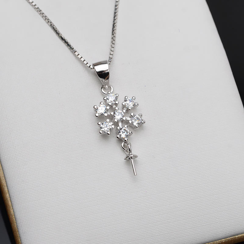 S925 Silver Pearl Jewelry DIY Accessories Semi Finished Fine Pendants Charms Empty Tray Personalized Head Snowflake Pendant for