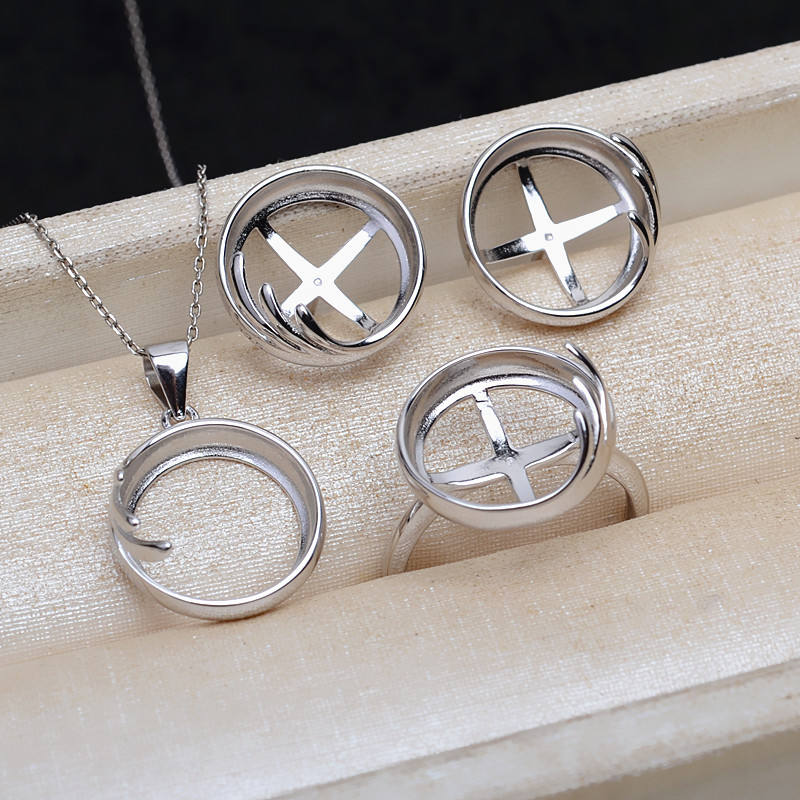 S925 Silver Pendant Earring Ring Holder Set 13.5mm Pearl Horse Shell Flat Bottom Empty Holder DIY Jewelry Findings-4789