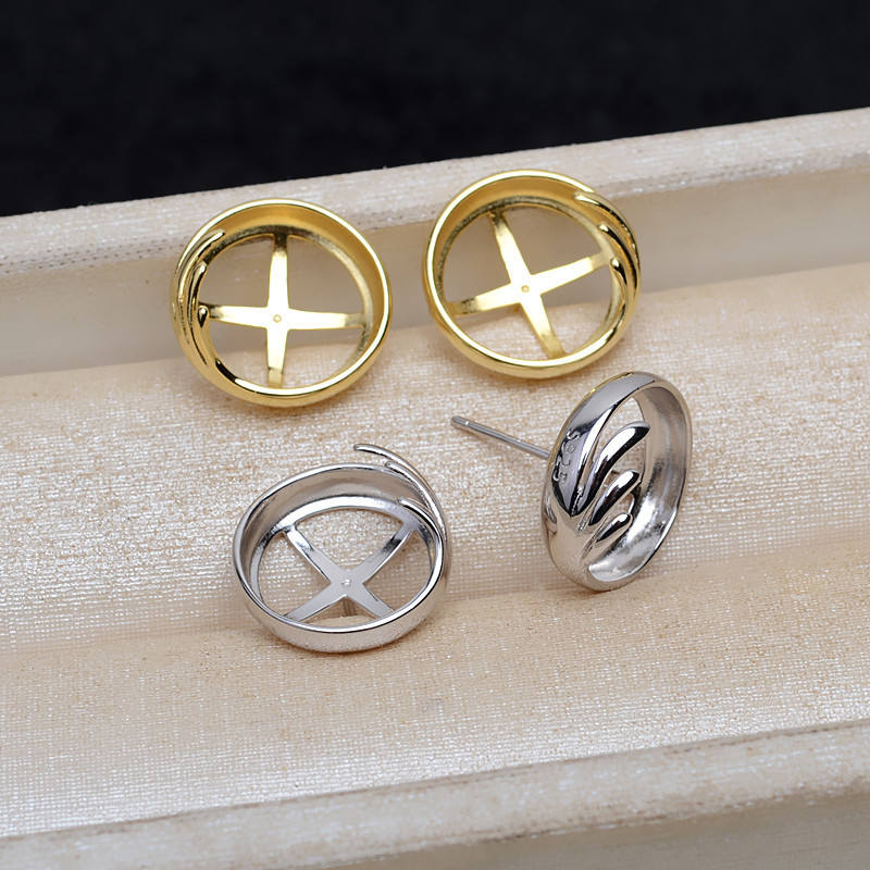 S925 Silver Pendant Earring Ring Holder Set 13.5mm Pearl Horse Shell Flat Bottom Empty Bead Caps DIY Jewelry Findings 4789