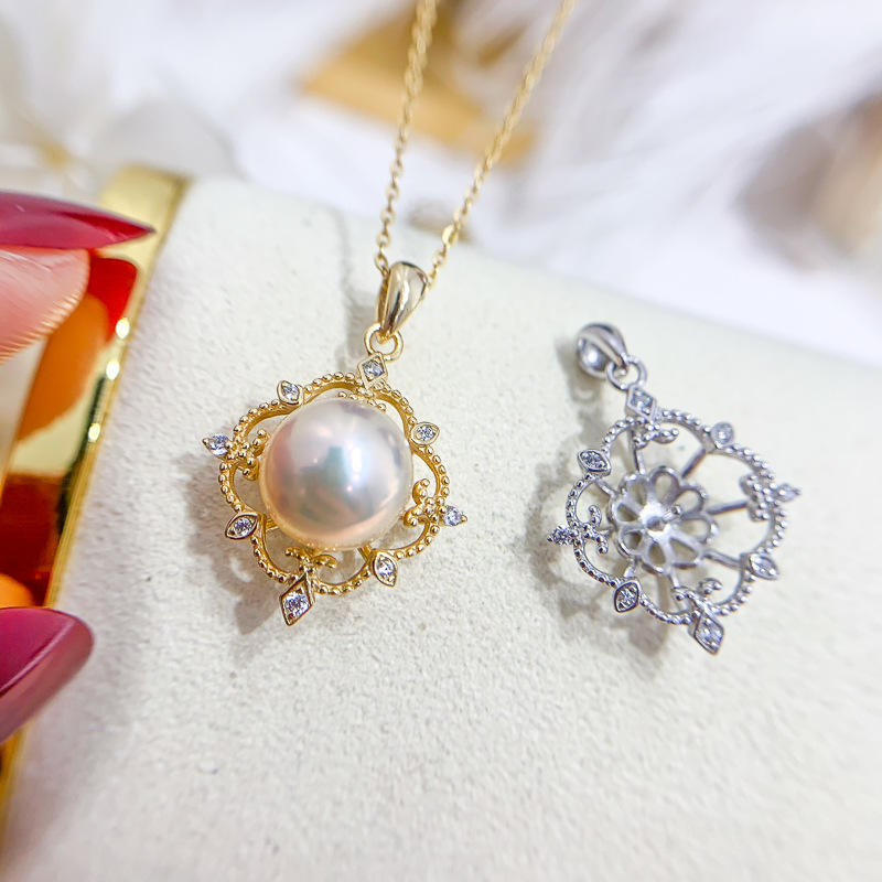 S925 Silver Pendant Empty Holder DIY 9-10mm Bead 30496 Concealer Jade Necklace Diamond Accessories Accessory Pendants Charms