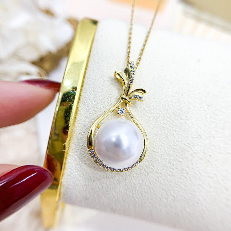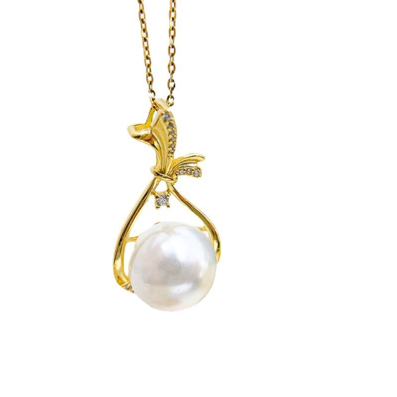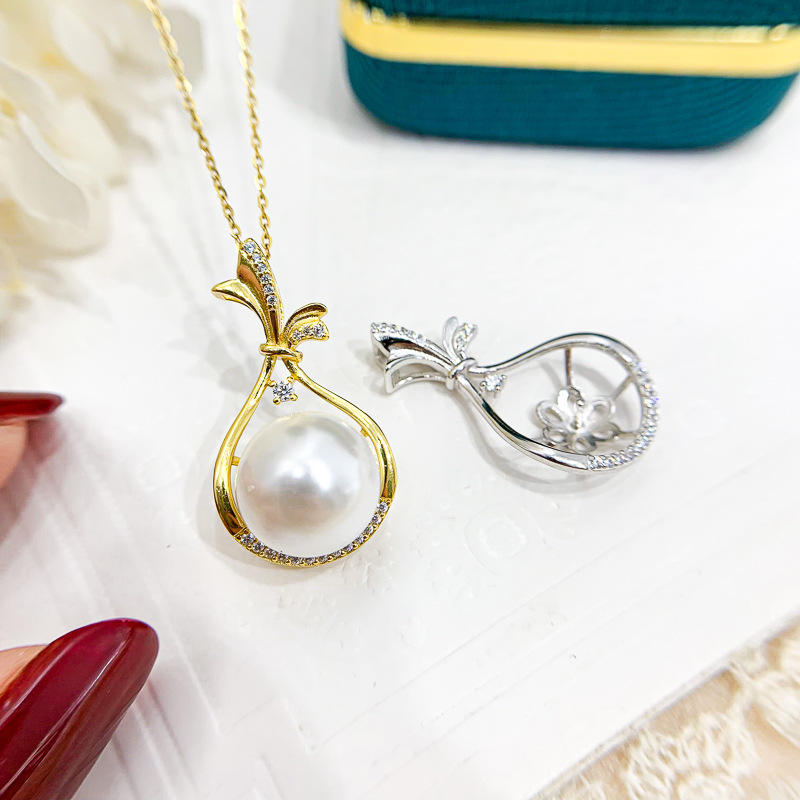 S925 Silver Pendant Empty Holder DIY 11-13mm Round Bead Necklace 30880 Diamond Accessories Concealer