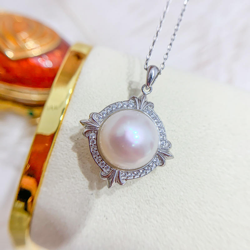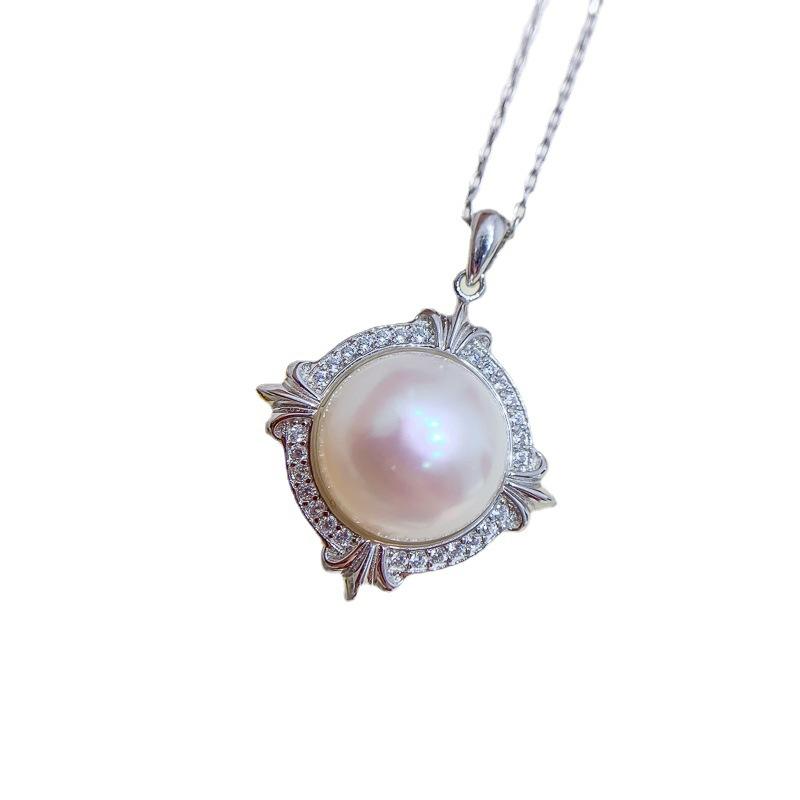 S925 Silver Pendant Empty Holder Gorgeous Concealer Necklace 12-14mm Beads DIY Pearl Accessories Pearl Pendants Charms Model