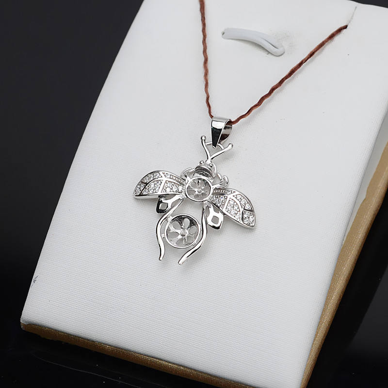 S925 Silver Pendant Necklace 2 Large Bee Beads Multiple Pearl Pendants DIY Jewelry Accessory Pearl-Inlaid Hollow Charm Style Bag