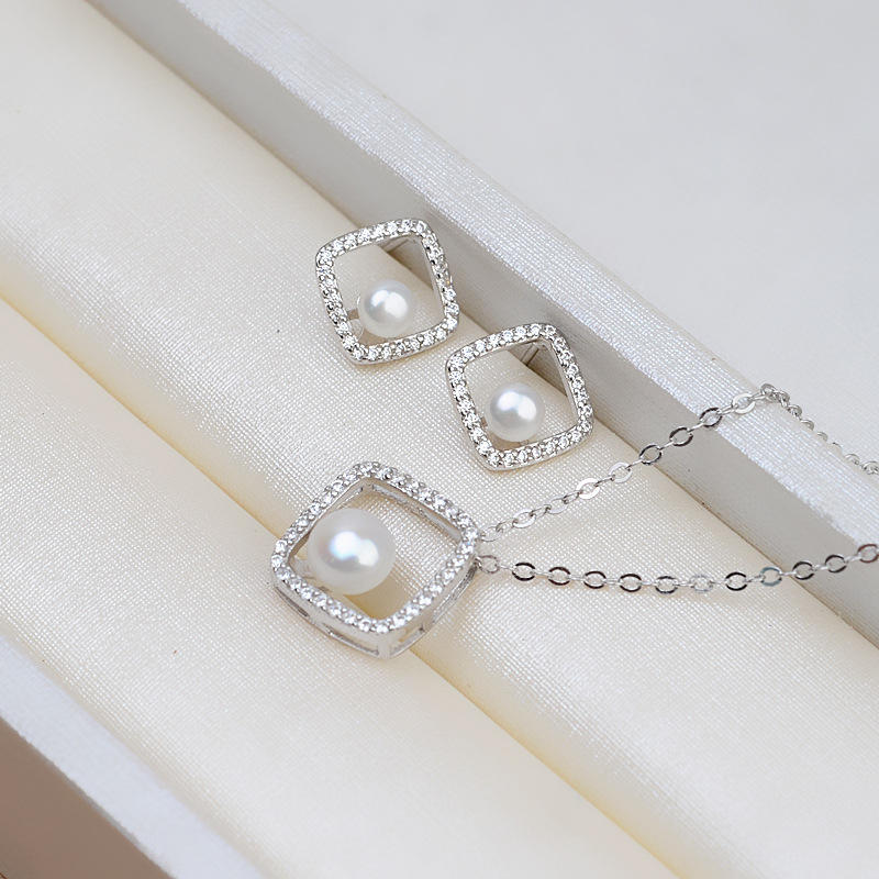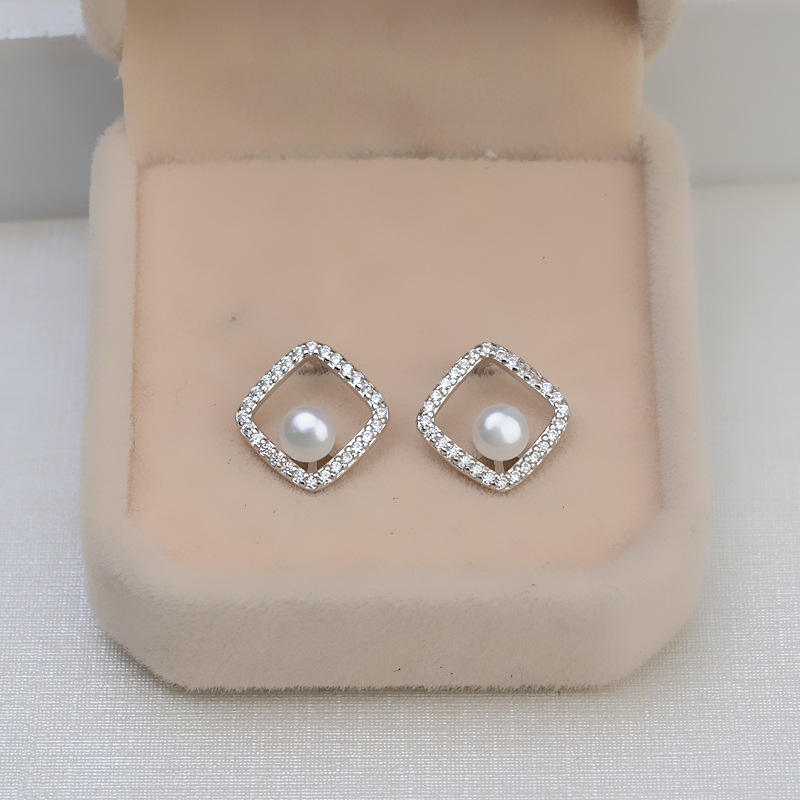 S925 Silver Pendant Trendy Female Square Earpin Pin DIY Jewelry Accessories 1387 Chain Earrings Personalized Stud Earrings Set