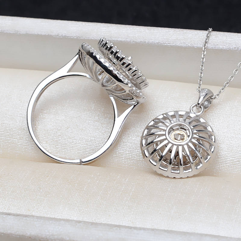 S925 Silver Pendant and 11-13 Pearl DIY Female Ring Rotating Set with Empty Tray 2976 Jewelry Findings & Components