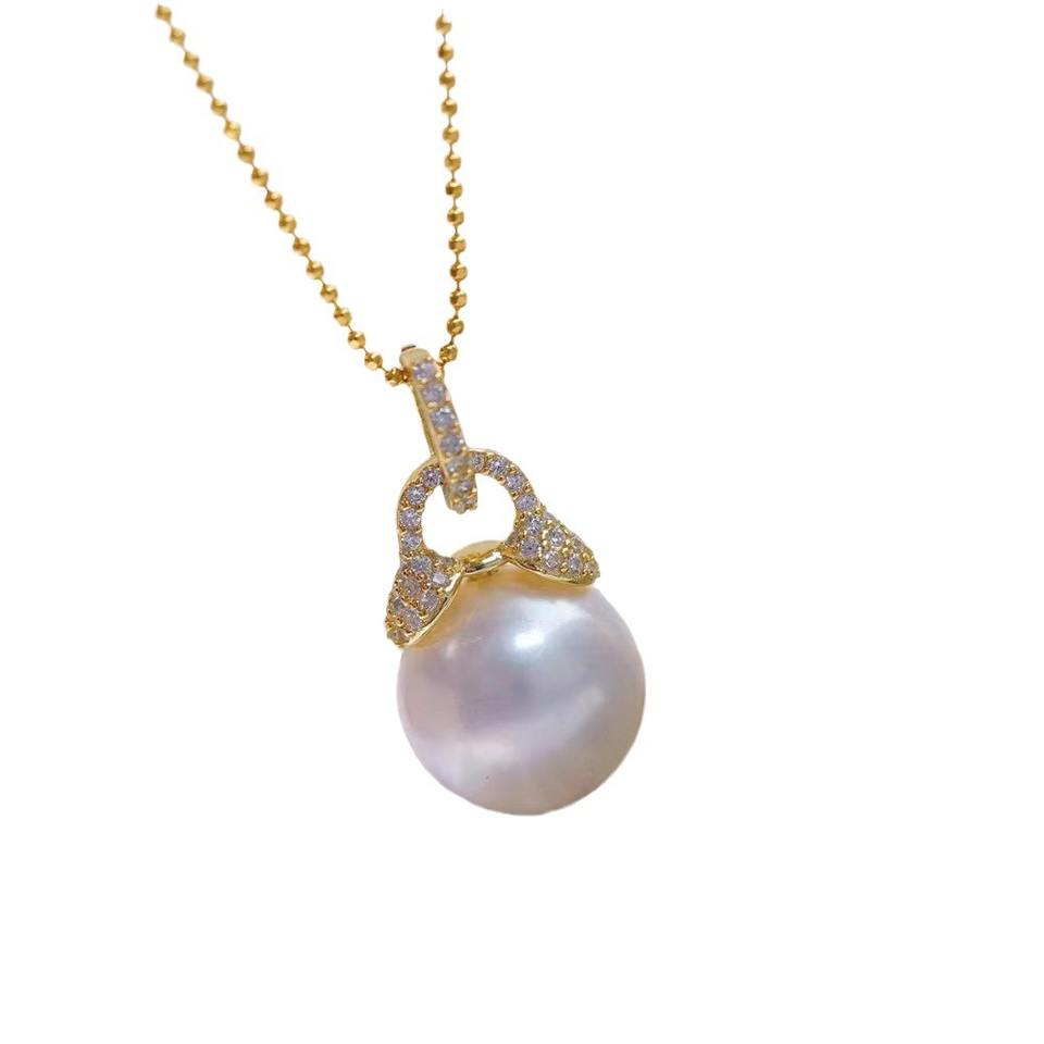 S925 Silver Pendant with 10-13mm Round Beads DIY Simple Jade Necklace with Empty Stand Accessory 31070