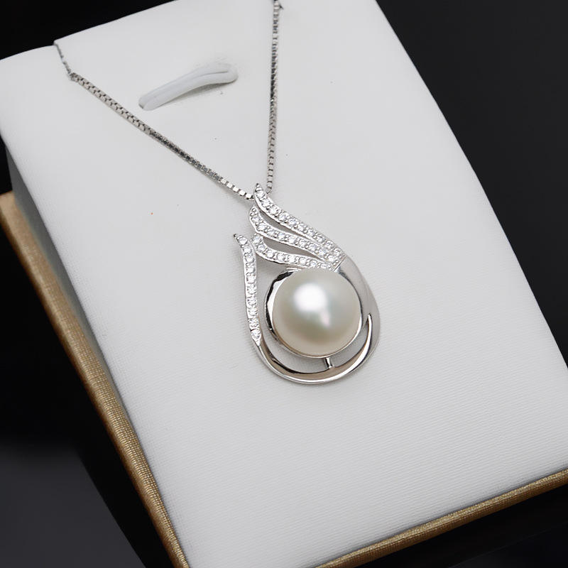 S925 Silver Pendant with Large DIY Semi-Finished Pearl Jewelry Tray 801 Women's Simple Head Pendant with Pearl Charms