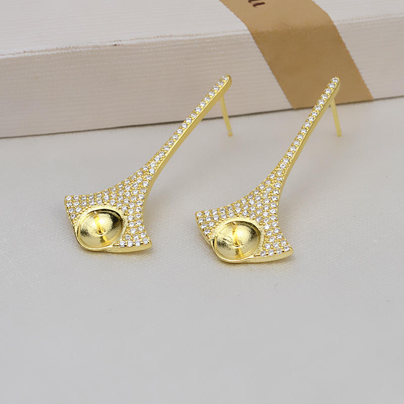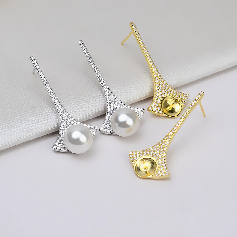 S925 Silver Personalized Female Earpins 4-5 Pearl Inlay DIY Accessories Empty Tray Semi Finished 1035 Stud Earrings