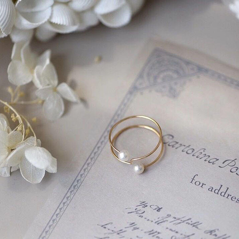 S925 Silver Ring DIY Pearl Accessories Empty Stand Double Pearl Edition 6-8mm Beads 10062 Loose Pearls Silver Jewelry Stand