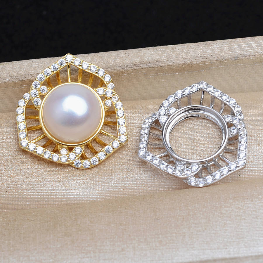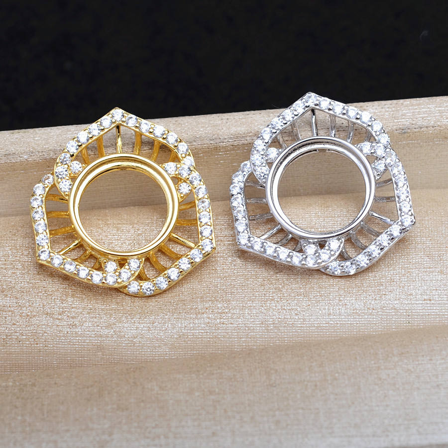 S925 Silver Rose Flower Mabe Loose Pearl Accessory DIY Empty Pendant Holder 11.7-11.9 Accessory 5739