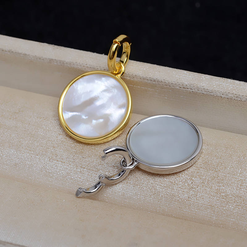 S925 Silver Shell Round Pendant Female DIY Accessory for Bracelet Fine Pendants & Charms 4414