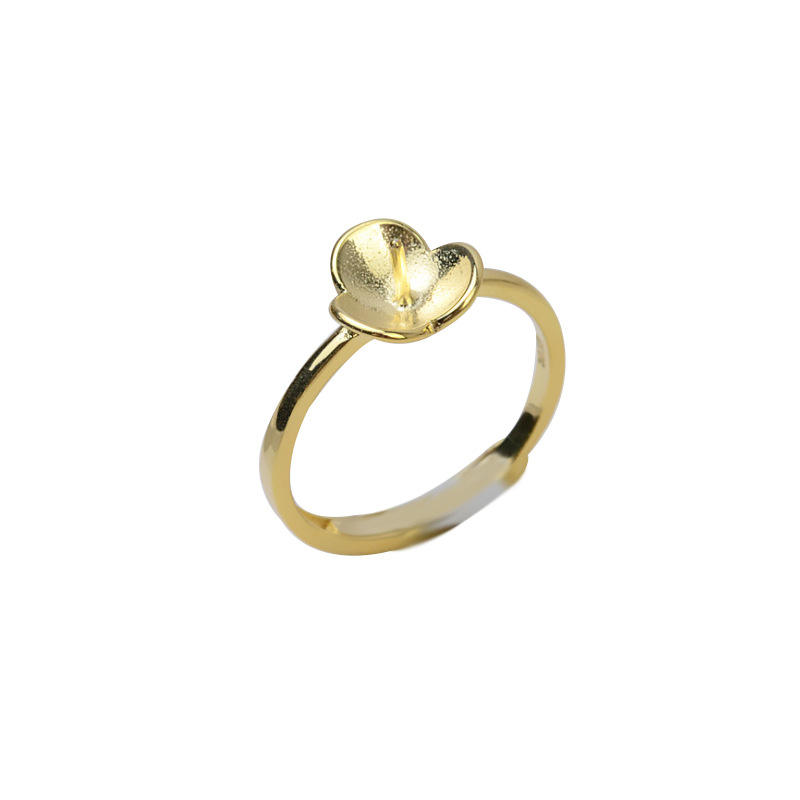 S925 Silver Simple Flower Plate Opening Ring Female Open Mouth Pearl DIY Accessories 8-9 Empty Holder 197 Number Shape
