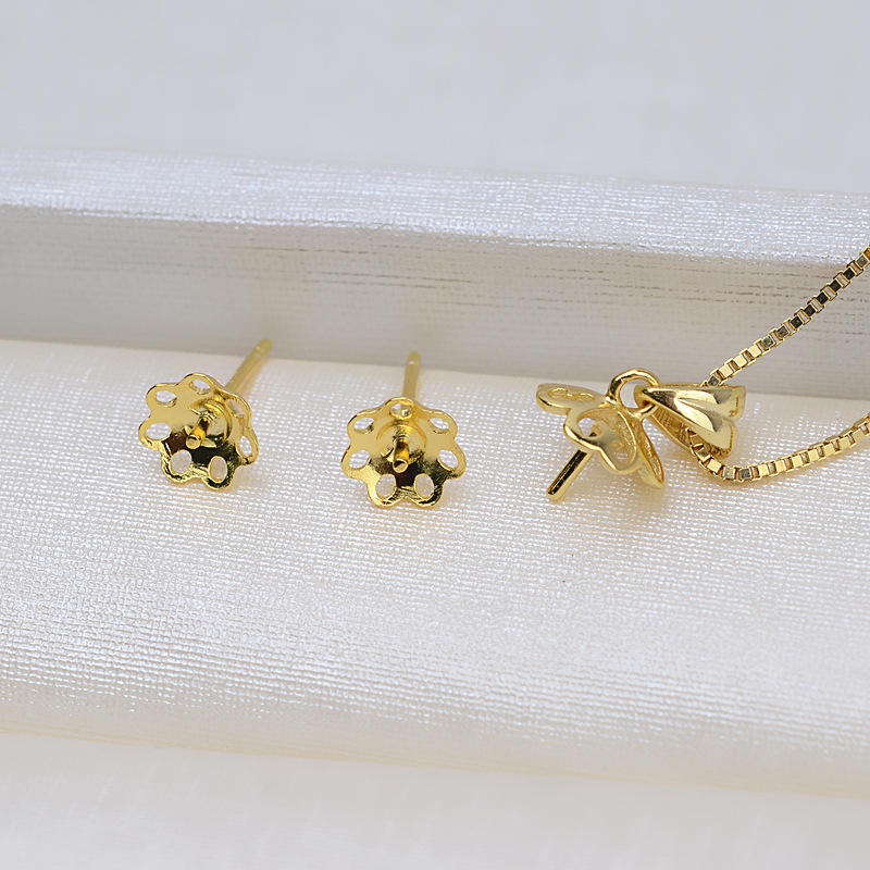 S925 Silver Simple Stud Earrings 3-6 Pearl Painless DIY Accessories Empty Holder Without Ear Holes