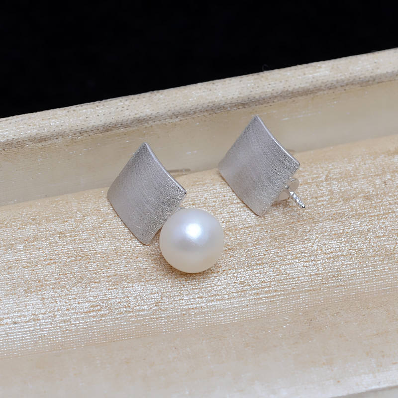S925 Silver Square Earrings with 9-10 Pearls Personalized DIY Accessories Empty Support for Custom Design