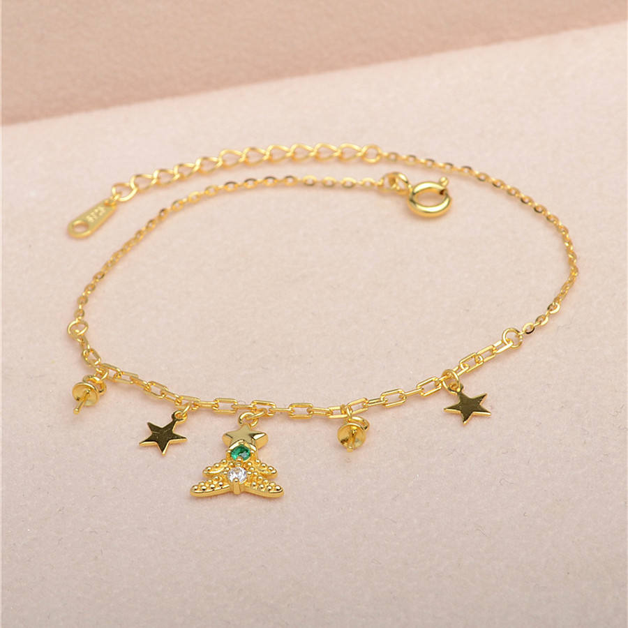 S925 Silver Star Fine Charm Bracelet Accessory Holder DIY Pearl Empty Bracelet Stand Double Pearl 5608 Christmas Tree Christmas