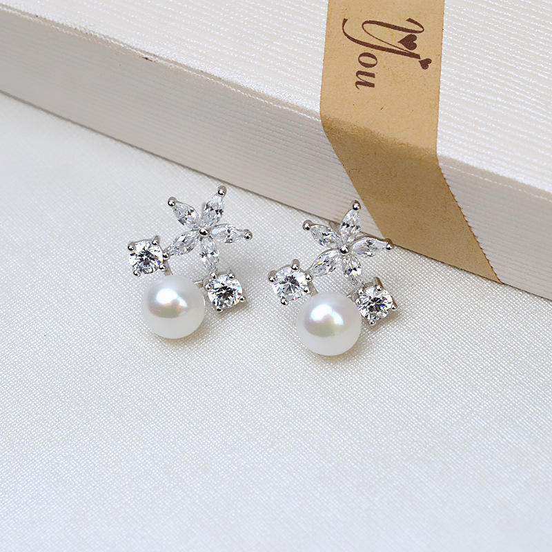 S925 Silver Stud Earrings for Women Handmade Simple DIY Jewelry Accessories Personalized Pearl Semi Finished