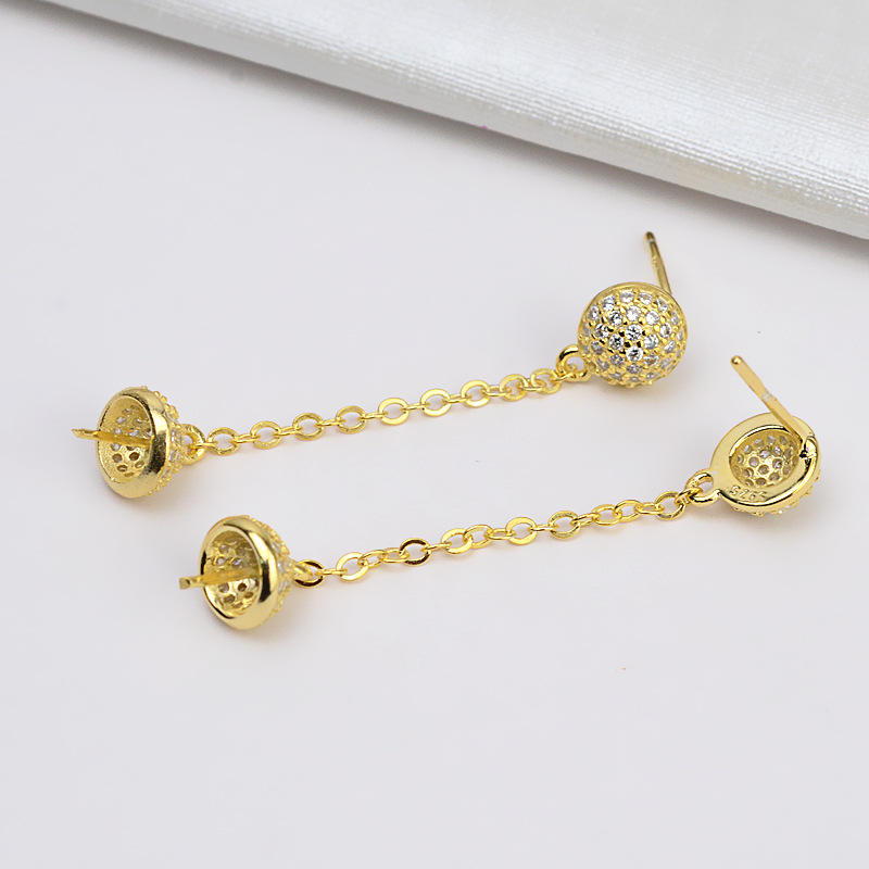 S925 Silver Tassel Chain Earrings with Long Earline Women's Personalized Pearl Crystal Jewelry DIY Accessories Empty Product