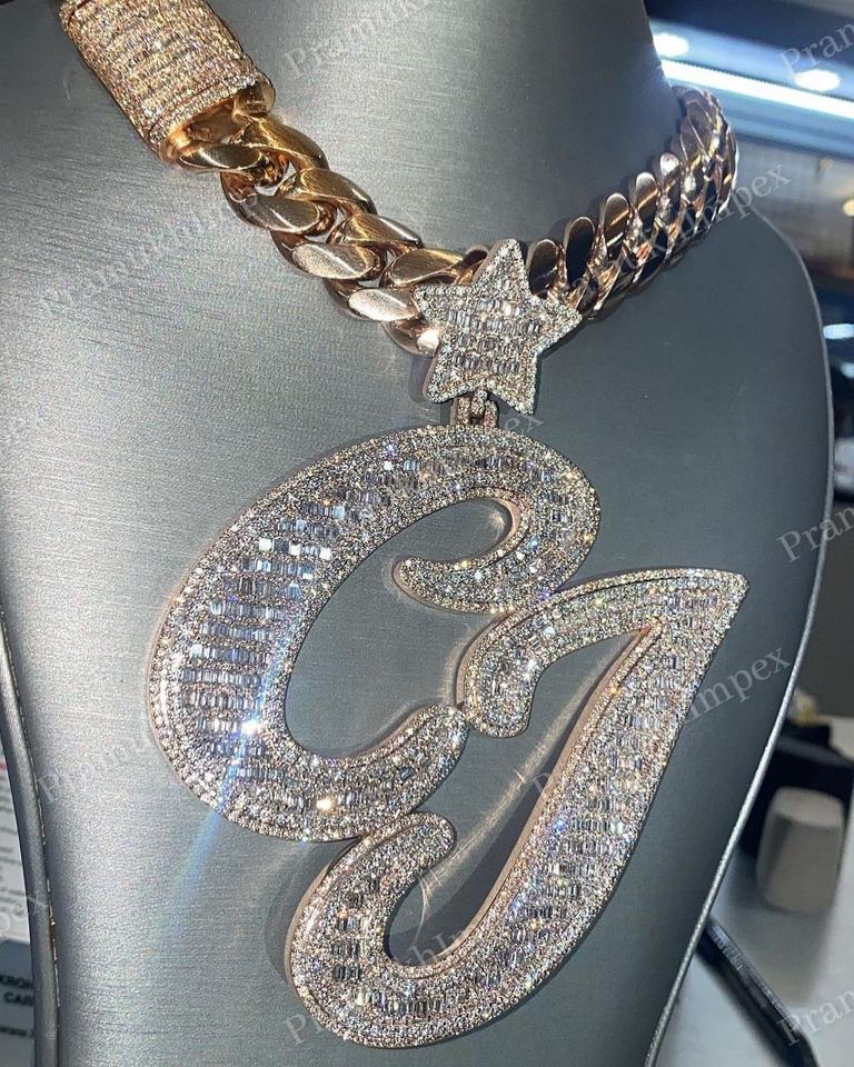 S925 Silver Two Tone Fully Iced Custom Letter CJ Pendant Unisex Hip Hop Style Gold Moissanite Reasonable Price for Party GRA