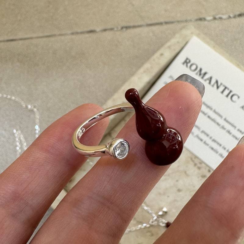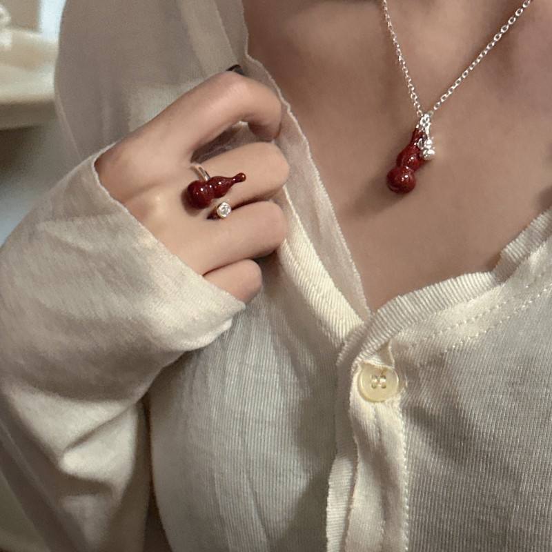 S925 Sterling Silver Angora Red Gourd Ring Retro Simple INS Style Ring Korean Version Niche Design Fashion Jewelry Sets