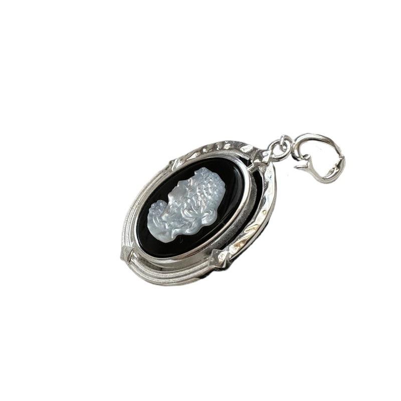 S925 Sterling Silver Beauty Head Cameo Pendant Korean Version Niche Design Blogger Style Personality Side Pendant Necklace